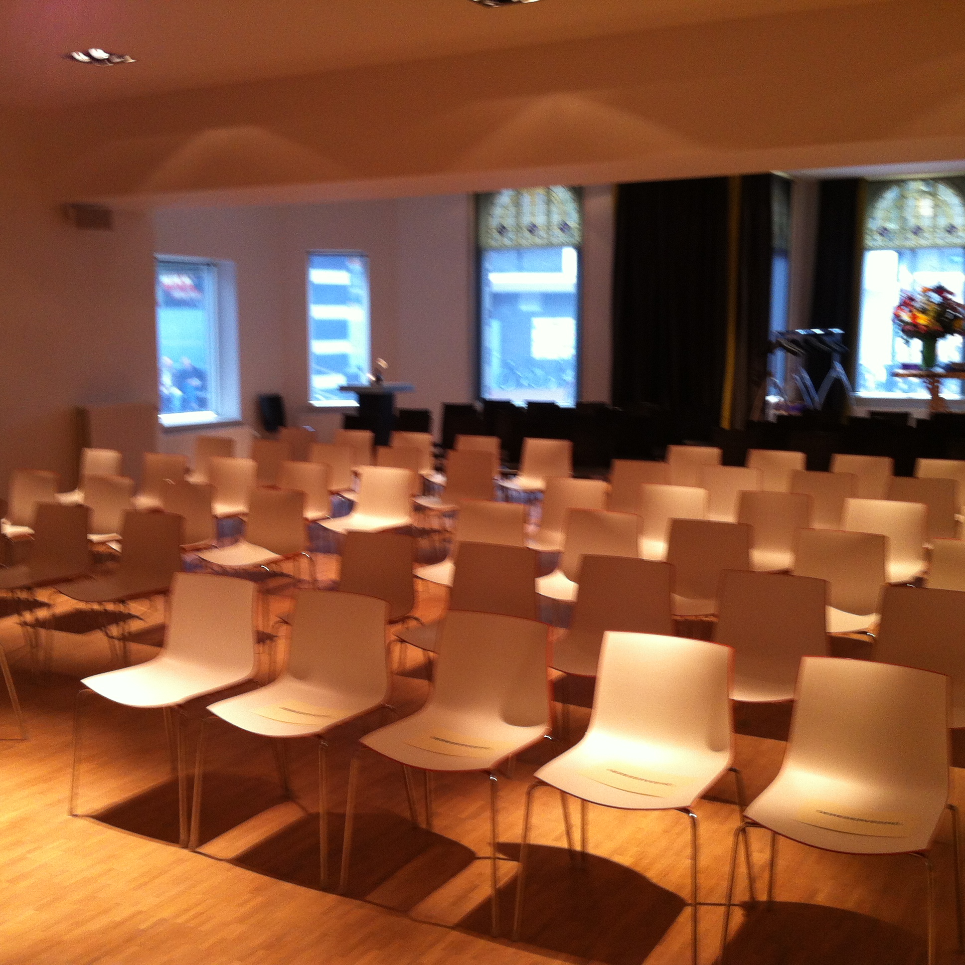 Deze prachtige ruime zaal heeft een eigentijds karakter en is volledig geschikt gemaakt om uw conferentie of vergadering succesvol te laten verlopen. De zaal bevat moderne geluids- en presentatieapparatuur. Een camerasysteem biedt ook de online deelnemers van de bijeenkomst de mogelijkheid om actief deel te nemen aan de vergadering. De Conferentieruimte is tevens voorzien van een Bose geluidssysteem, diverse microfoons, flipovers, blocnotes en schrijfmateriaal.
